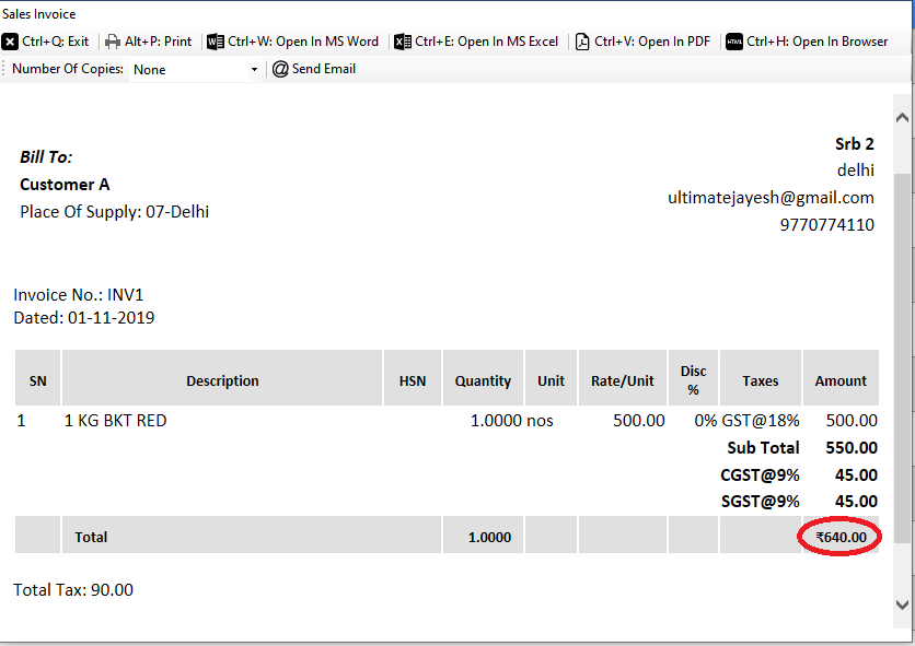 At times you might find that your Invoice value is incorrect and not equal to the sum of the Taxable value and the Tax amounts. This might also impact the values in your GST reports as shown in the image below: