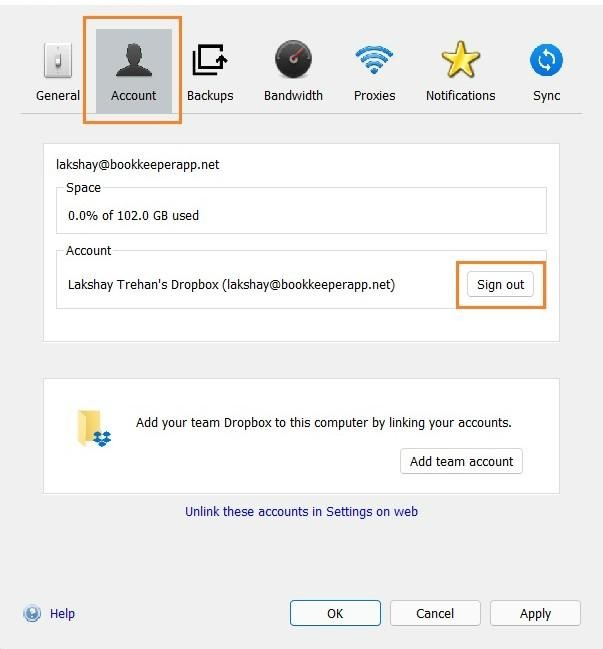 This article explains how to change the Dropbox account in the Book Keeper App if you're running Windows.